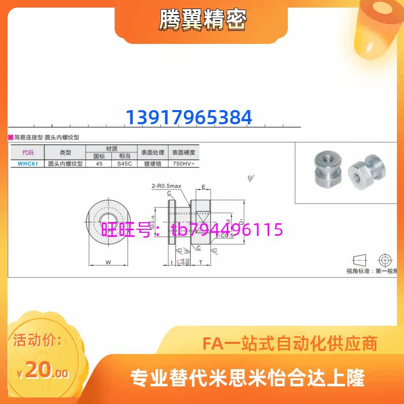 WHC61-M6 WHC61-M6 M8 M10 M12-1 0 M12-1 1 25 1 5-L8 L10 floating joint round head internal thread type