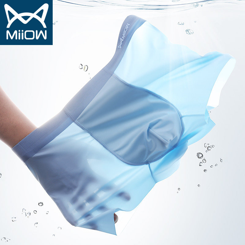 Cat man ice silk panties men's flat angle graphene antibacterial ultra-thin men's transparent non-marking breathable sexy briefs
