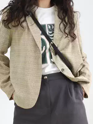 Fine points Spring stand on the branches of the virtual spring new retro yellow color small plaid short suit jacket women thin
