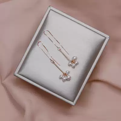 Temperament long version of pearl earrings 2021 New Tide Japan and South Korea simple ear refining 14K gold pure silver earrings show thin face