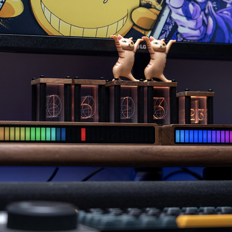 RGB pseudo glow tube clock LED desktop creative ornament DIY vintage solid wood electronic digital glow clock gift