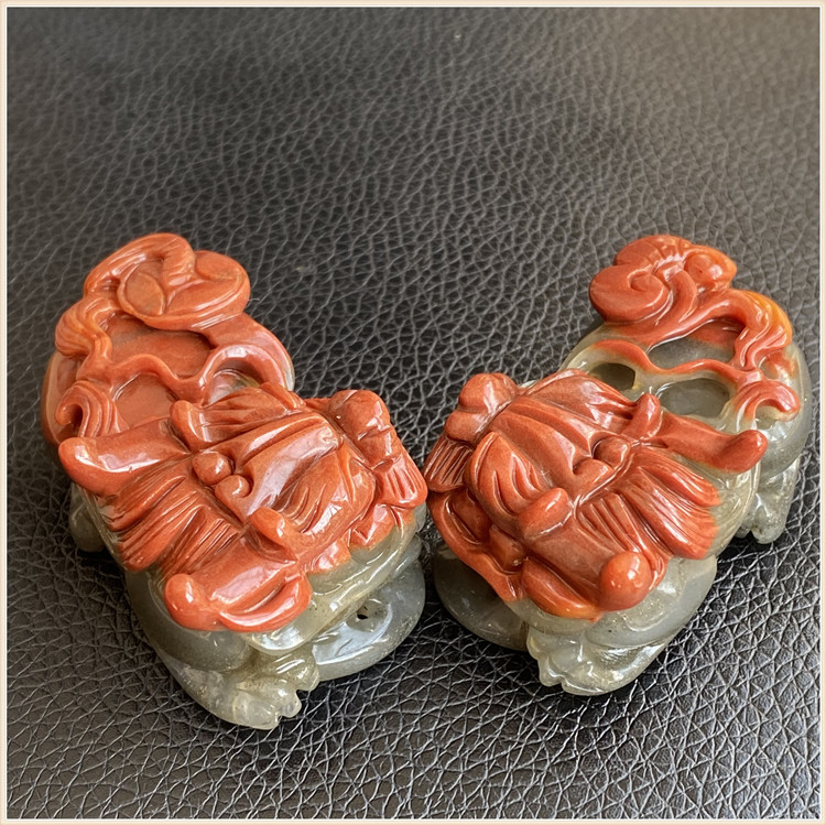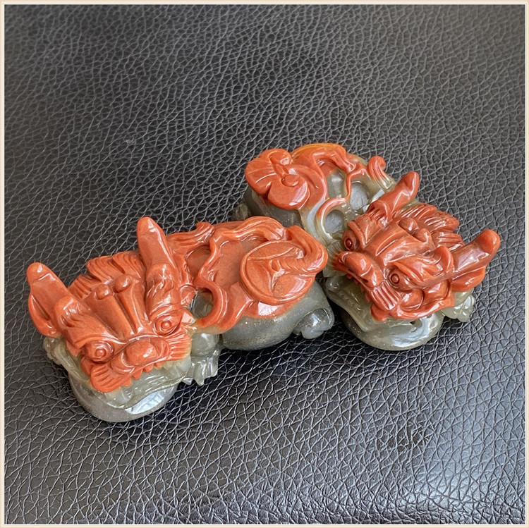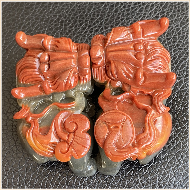 Yunnan Huanglong Jade Pixiu Pendant Pair of Ice Seed Sands Red Lucky and Responsive Jade with Certificate