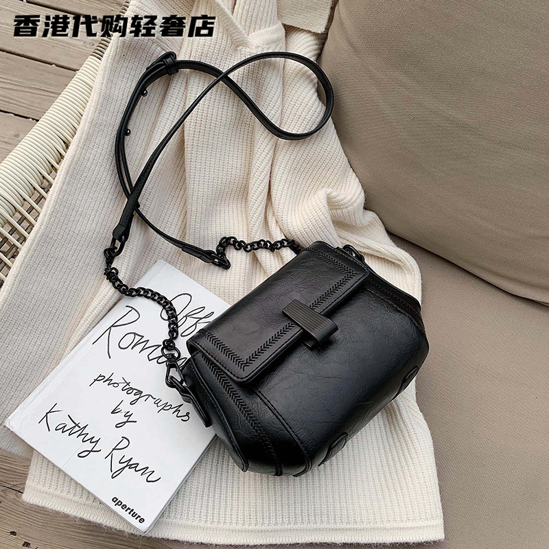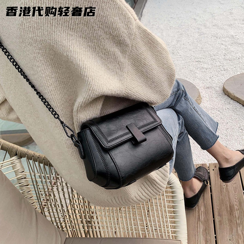 French leather female bag cover high-sense red fashion with single shoulder strand chain small square bag girl