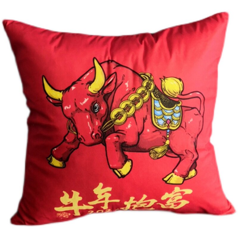 2021 cow year sofa with pillow ultra soft red back cushion for Chinese New Year festive waist leans on car office chair backrest with core