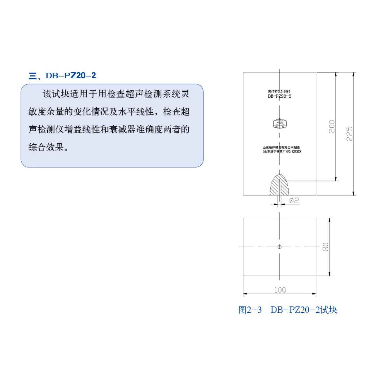 DB-P Z20 Ultrasound test block NB T47013-2015 Pressure Container without distortion test block