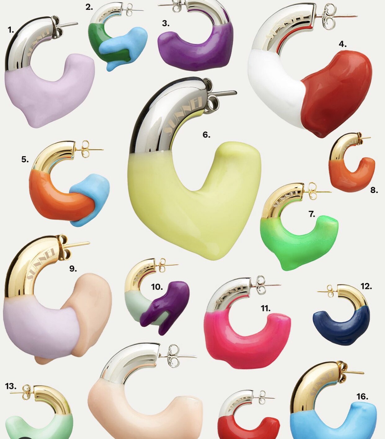 sunnei sol colored rubber earrings bicolor earrings ins niche colored ear pins candy earrings