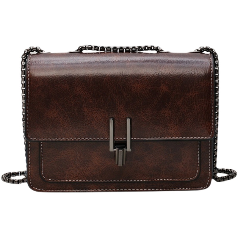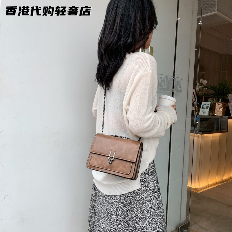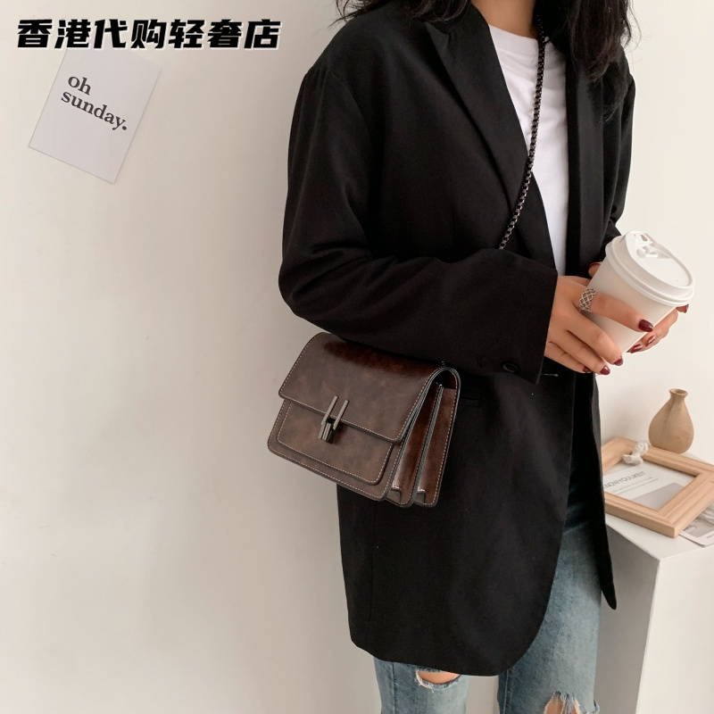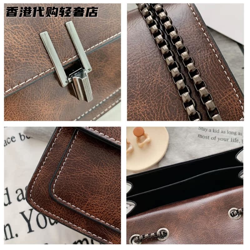 French Special Cabinet Women's Bag Advanced Texture Small Square Bag Fashion 100 Hitch Genuine Leather Skew Satchel Retro Single Shoulder Bag