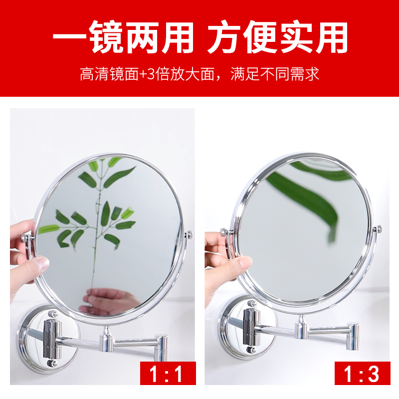 Free hole makeup mirror Bathroom wall sticker hotel double-sided beauty mirror Telescopic folding powder room magnifying glass
