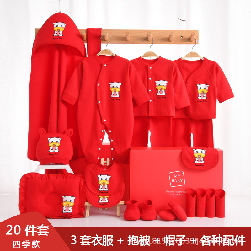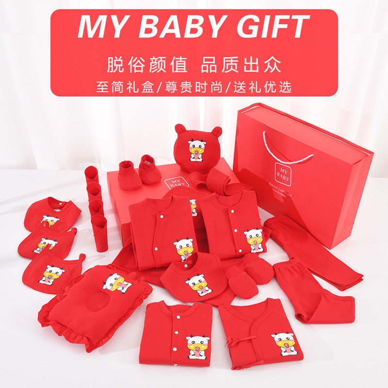 Baby Gift Box 2021 Fu Niu Welcome Baby Clothing Newborn 20 Pieces of Cotton Heating Pants Supplies Daquan