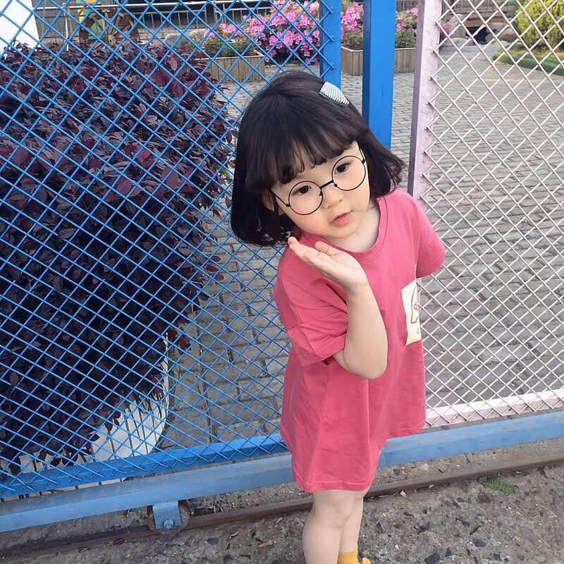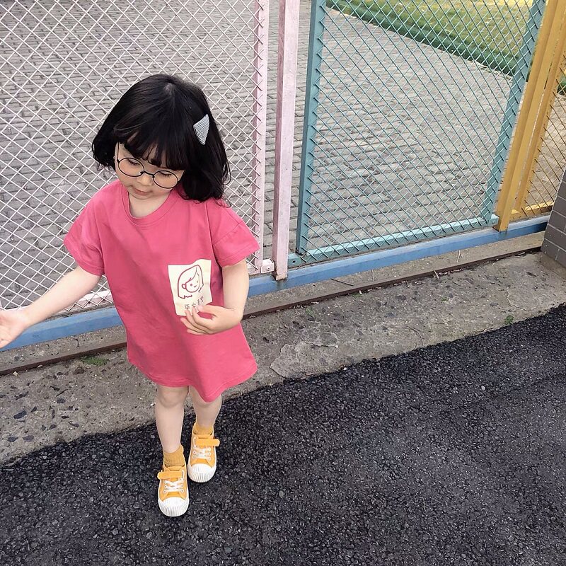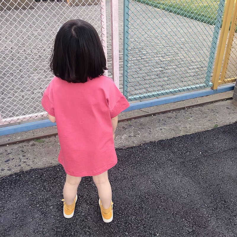 Pure cotton girl short sleeve T - shirt 2022 Han Edition new girl baby dress children middle - long - edition T - shirt