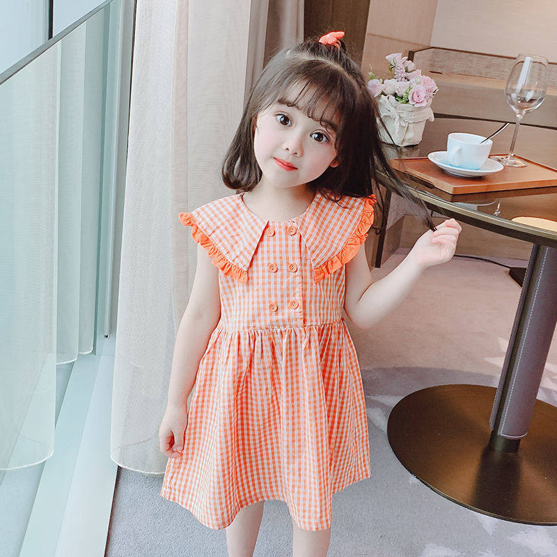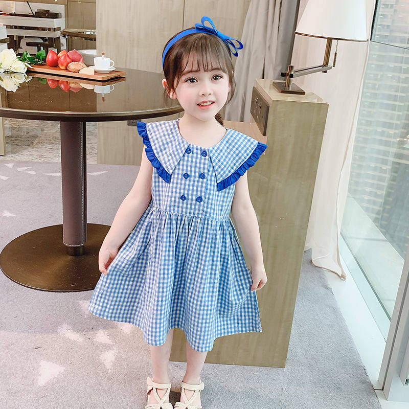 A-girl dress with clothes summer new children suit female baby plaid dress Academy Wind Han version Princess Leia dress 6792
