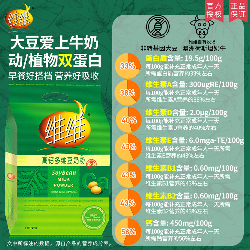 Vivi soy milk powder high calcium multidimensional breakfast soy milk powder 680g breakfast nutrition soy milk powder instant brewing drink