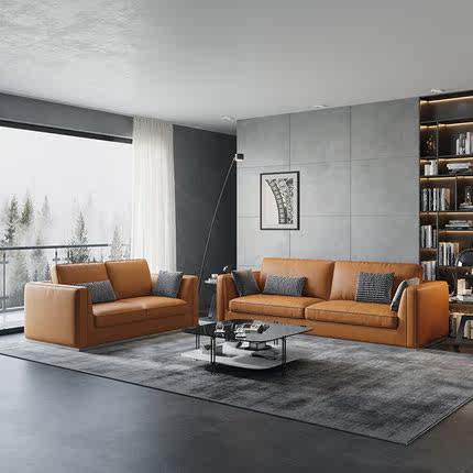 Office Business Hospitality guest trio Light Extravagant Tea Table Combo Brief Modern Real Leather Solid Wood Sofa