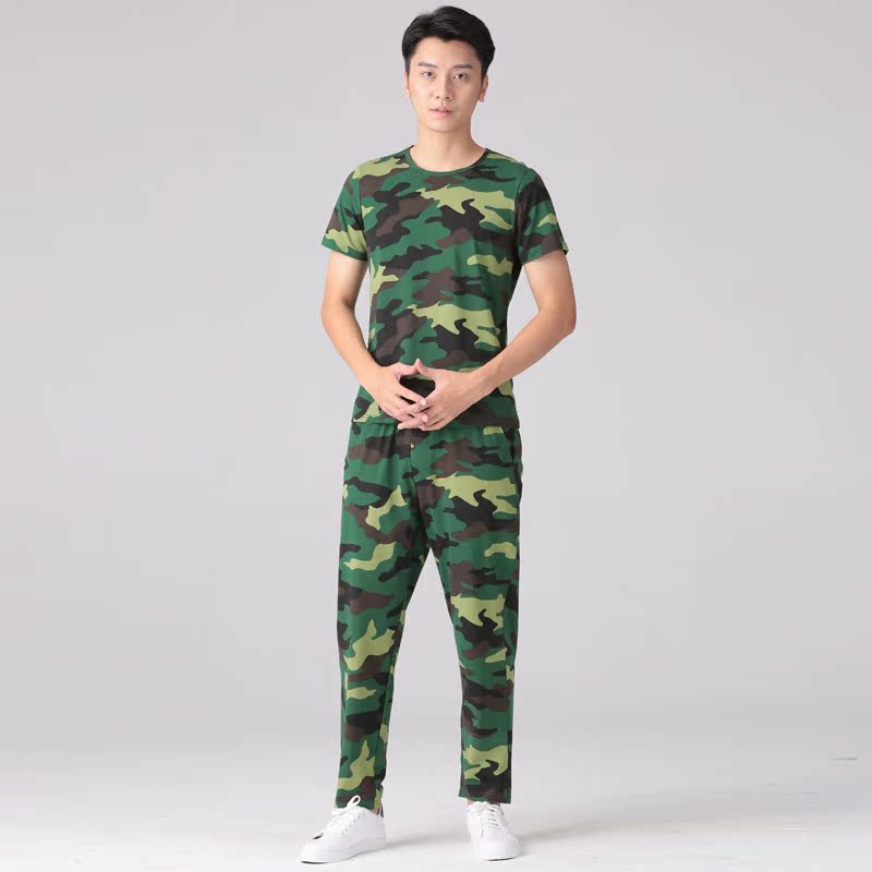 Camouflan suit male camouflate green camouflate short sleeve T-shirt camouflate pants military meme female summer student military training dress-Taobao