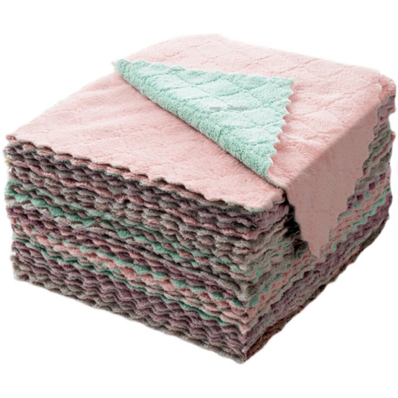 Home Large Number of thickened strips Double-sided thick coral suede Home White Cloth No Stick To Stick Oil Sloth Dishwashing Kitchen Dishwashing