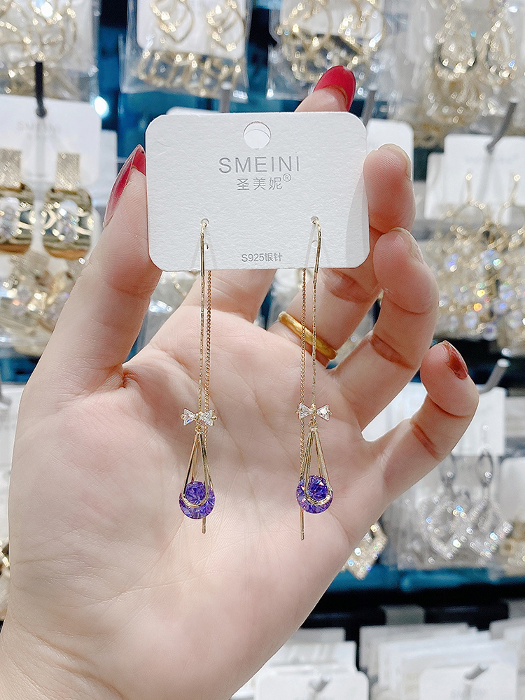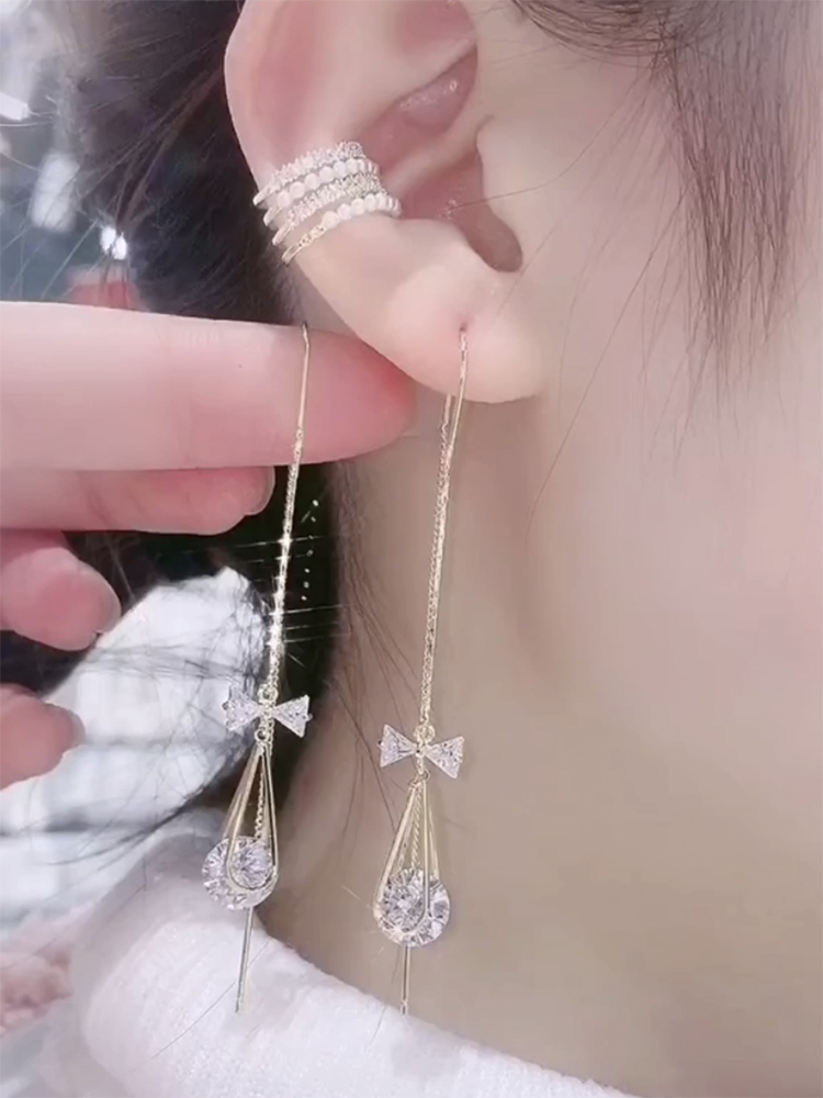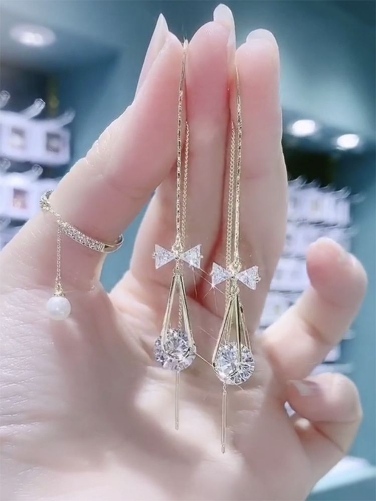 Angel Tears Drop Zircon Bracelet Super Shiny Temperament Pure Silver Earrings Long Version Superior 100 Hitch Ornament New Tide