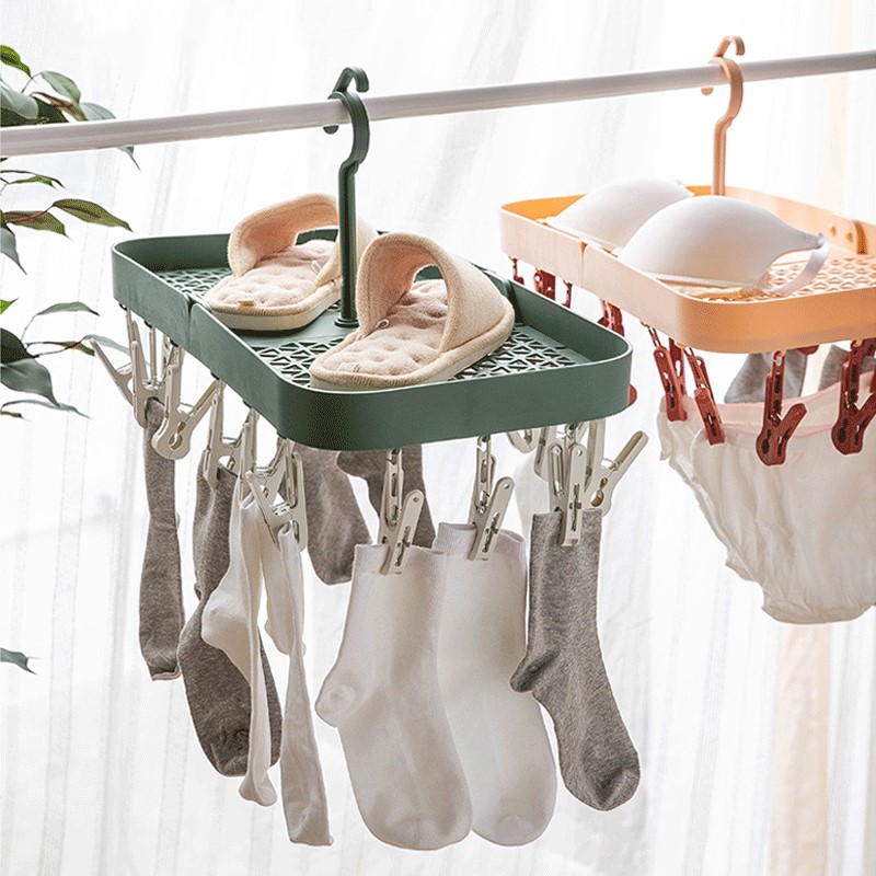 Folding clothes hanger multi-clip home multi-function drying socks hanging underwear panties clip drying artifact