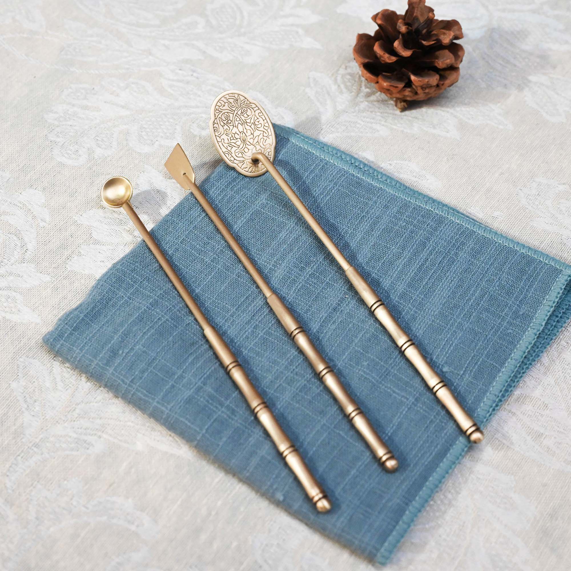 Seal incense three-piece set Chinese antique brass round texture seal incense incense spatula incense spoon incense ash press traditional incense