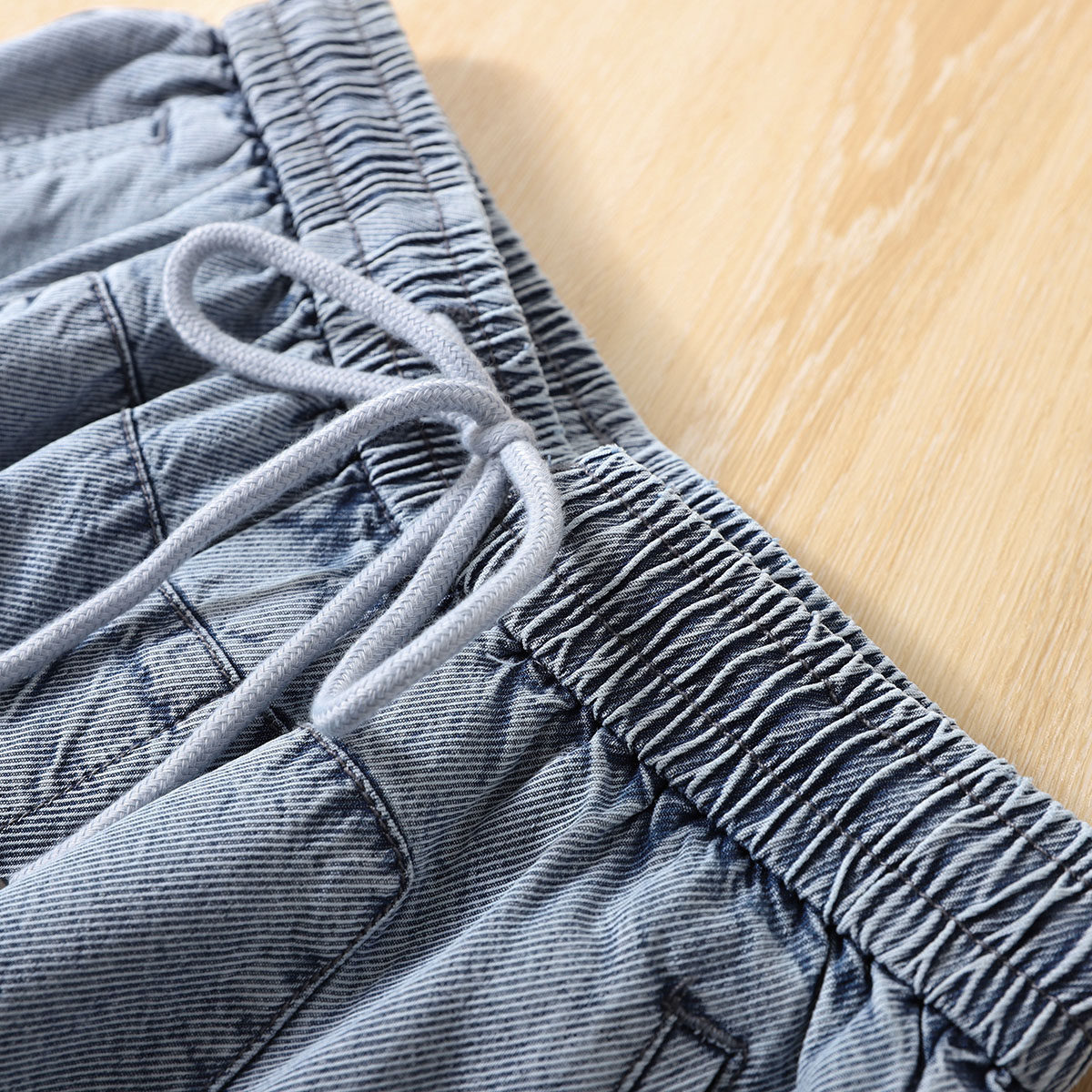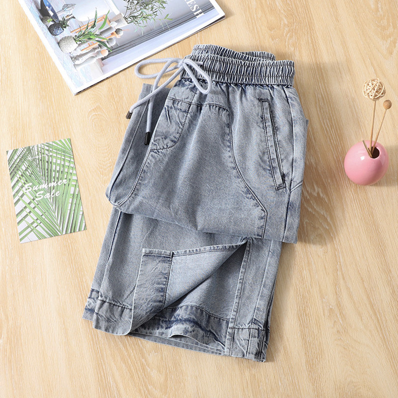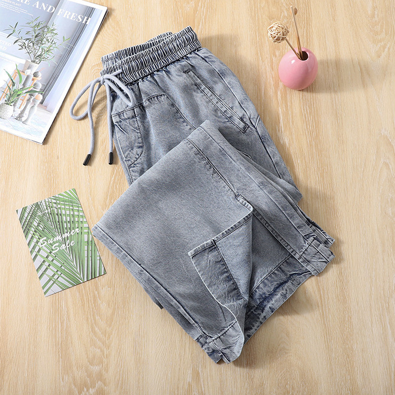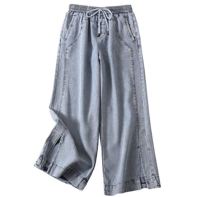 Diagonal Textured Sky Silk 90% Jeans Woman Summer Thin loose waist lacing pants loose slim straight cylinder wide pants