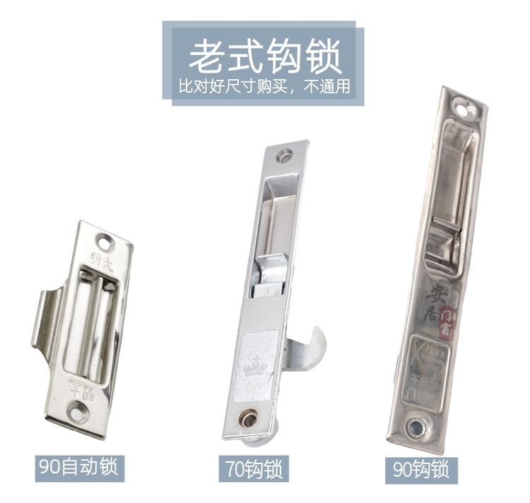Old-fashioned 90-type stainless steel window hook lock automatic knock lock aluminum alloy translation window manual lock push-pull door and window accessories