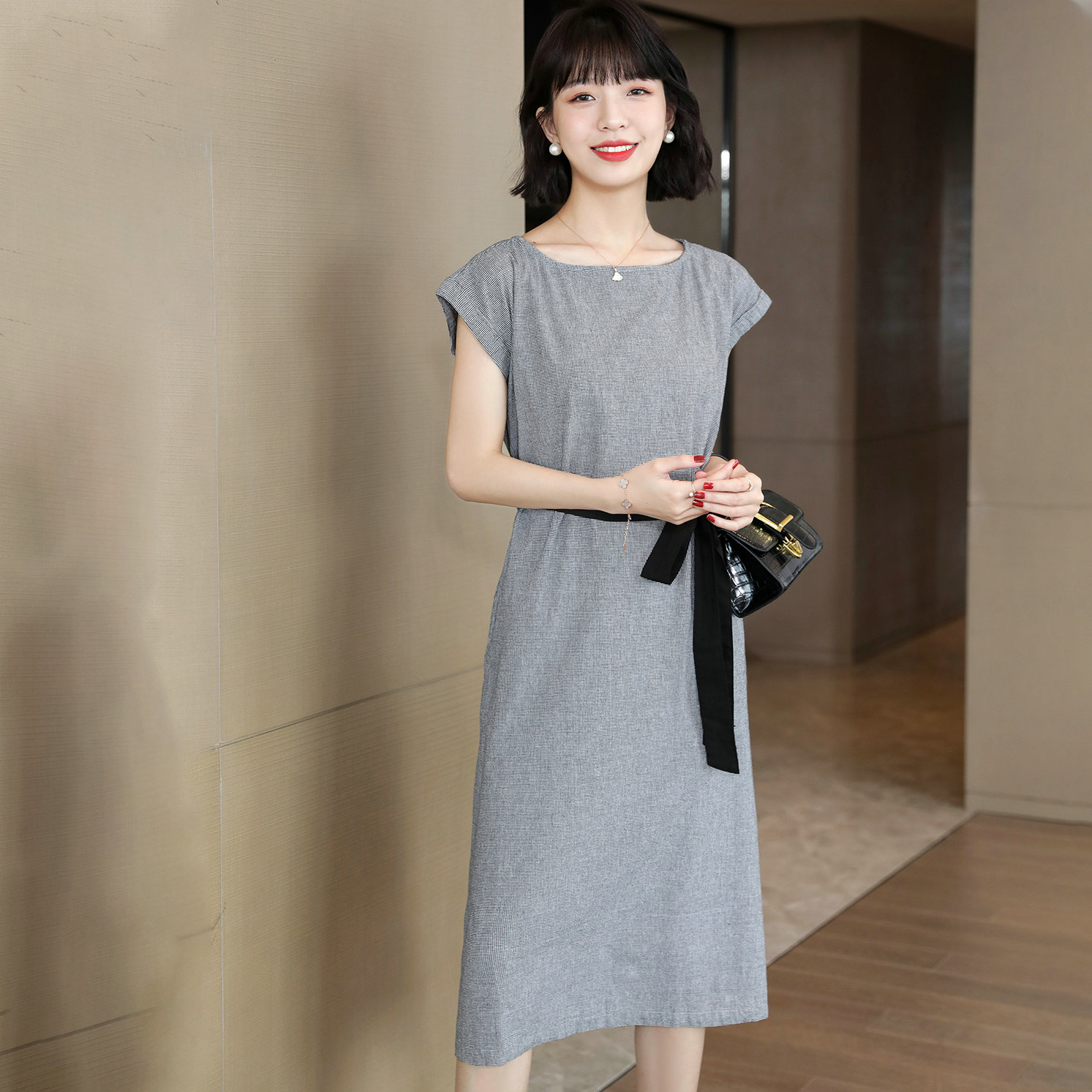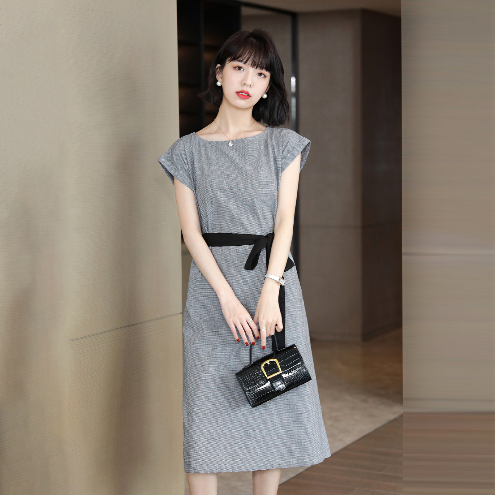 FENPERATE 2022 summer new high-end houndstooth dress retro loose tie waist mid-length skirt