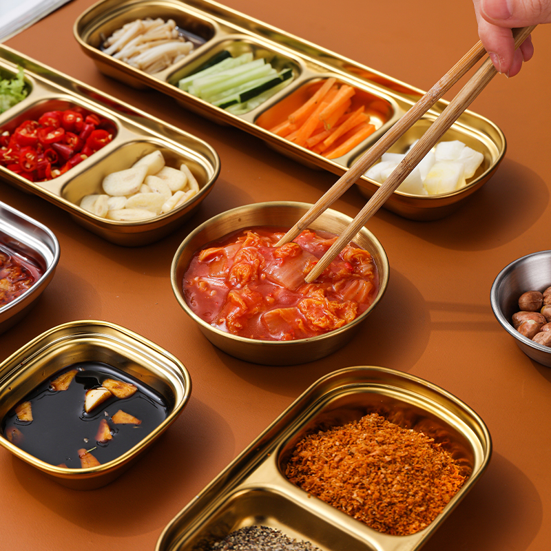 304 stainless steel golden dipping saucer side dish kimchi dish hot pot barbecue shop tableware seasoning dish two or three grid dishes