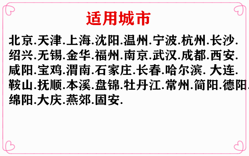 Beijing Shijiazhuang Langfang Wuhan Harbin Daqing Mudan Jiangzhou Nanjing Changzhou Shenyang Dalian Anshan Fushun Benn Creek Panjin Chengdu Deyang Mianyang Suining Texas Shanghai Xi'an Xianyang Weinan Tianjin Hangzhou Ningbo
