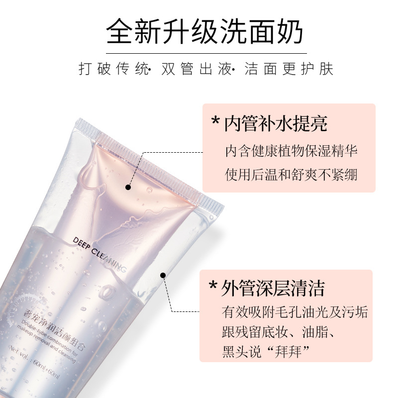 Big-name washing and unloading one double tube double effect luxury pet net moisturizing facial cleanser oil control clean foam cleanser