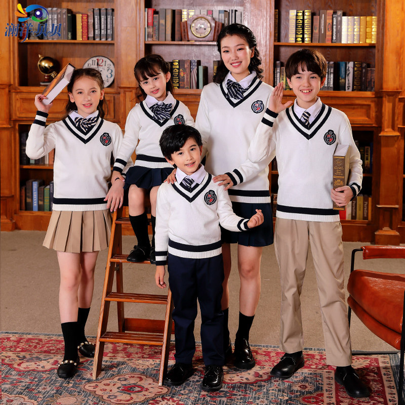 British style primary and secondary school uniforms red and yellow sweater spring and autumn three-piece suit kindergarten white shirt trousers class service