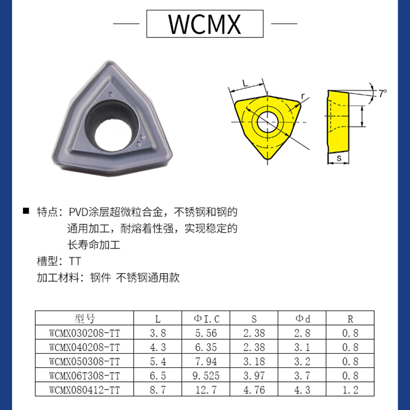 U drill blade violent drill spray water drill blade peach-shaped knife grain WCMX040208 050308 SPGT050204