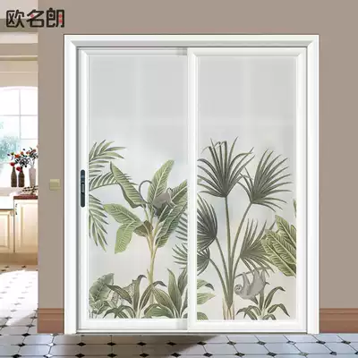 Tropical rainforest green leaf living room frosted glass door film transparent opaque cosmetic room Anti-voyeuristic garden window paper