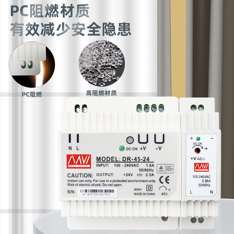Meiwei rail switching power supply DR-45-5-5A220 to 12V5V transformer 2a4a light strip monitoring lighting