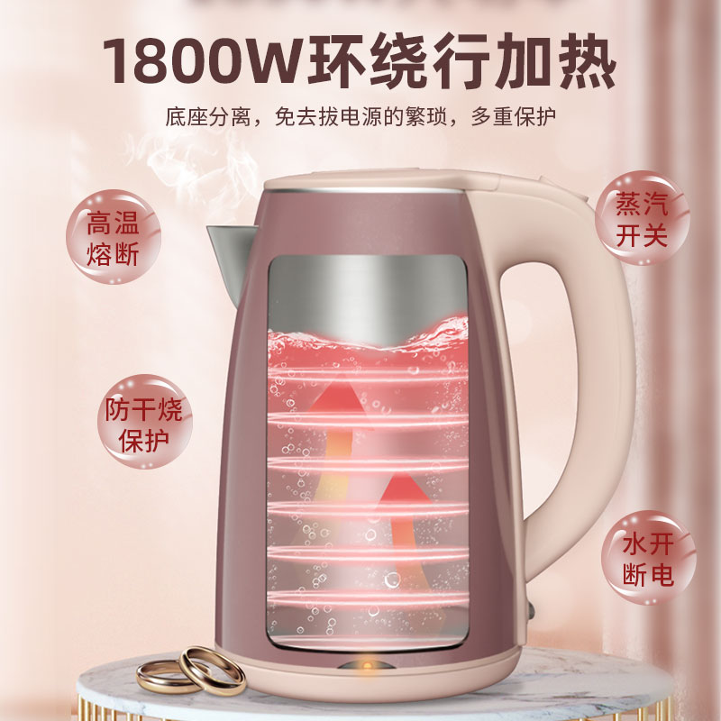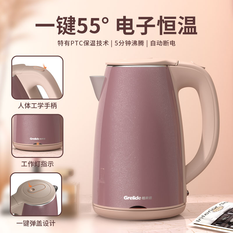 Glade electric kettle stainless steel kettle double-layer anti-scalding insulation 1 7L large-capacity quick-cooking kettle
