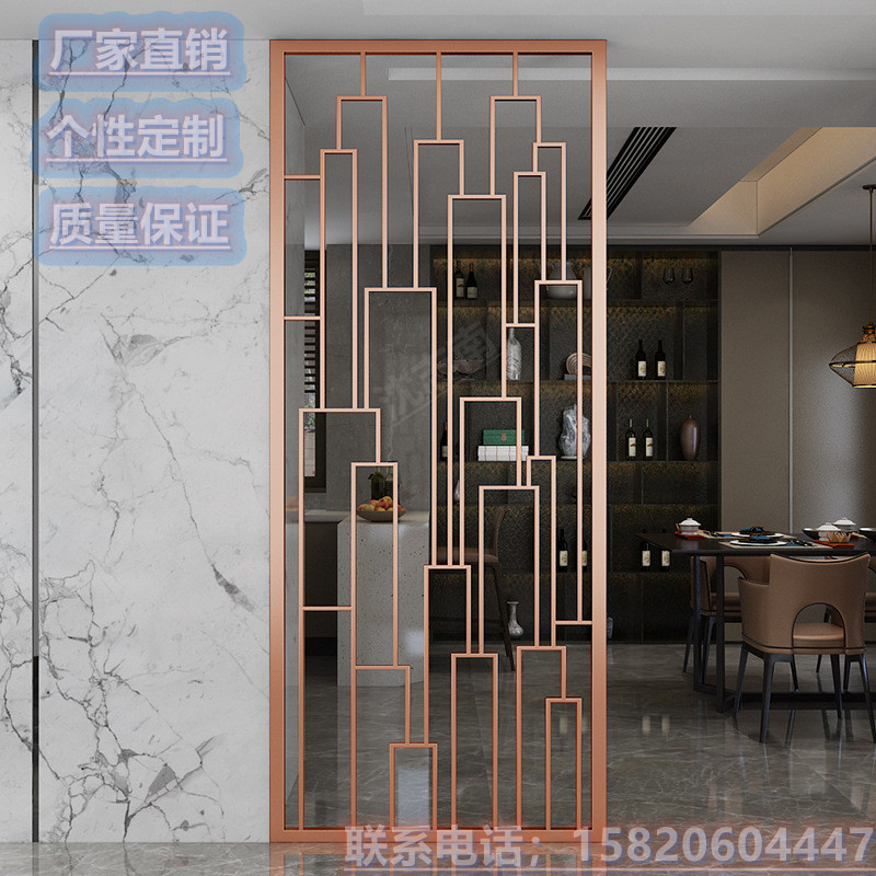 Net red new Chinese screen stainless steel partition villa living room carving simple aluminum alloy skeleton entryway decoration