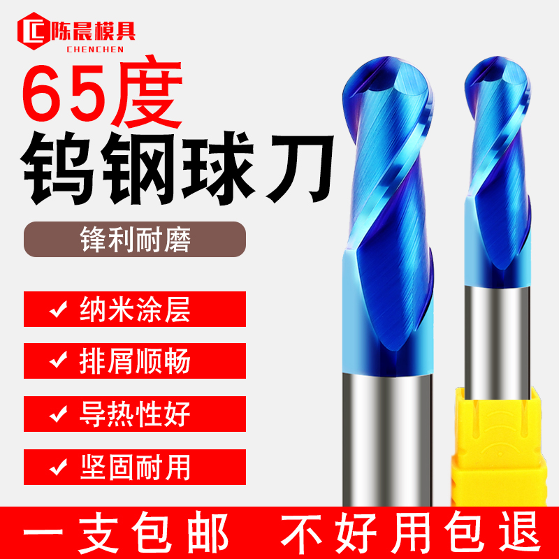 65 Degrees Tungsten Steel Milling Cutter Nanocoated Tungsten Steel Milling Cutter Hard Alloy Vertical Milling Cutter Ball Knife Stainless Steel Numerical Control Cutter