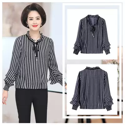 Large size women's chiffon shirt women's seven-point sleeve 2021 T-shirt middle-aged mother stripe top loose summer sunscreen