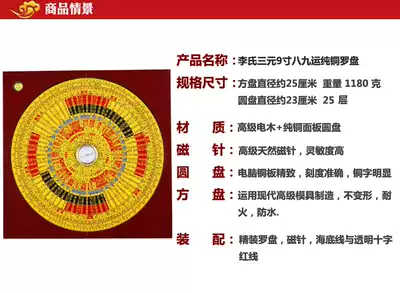 High-precision pure copper 9 inch Li Juming eight nine Yun Xuankong flying star Feng Shui compass Li's three-yuan disk compass