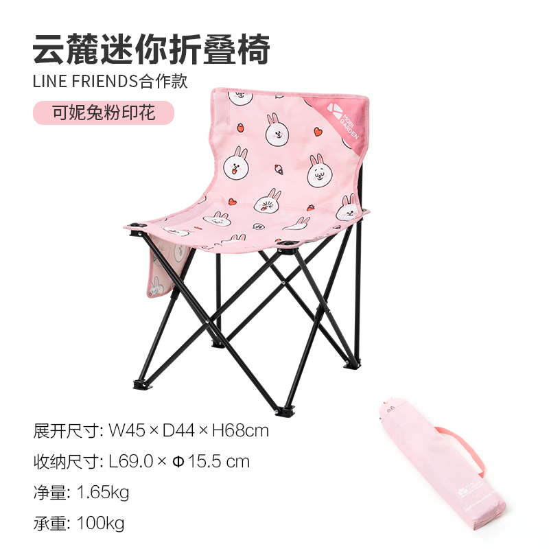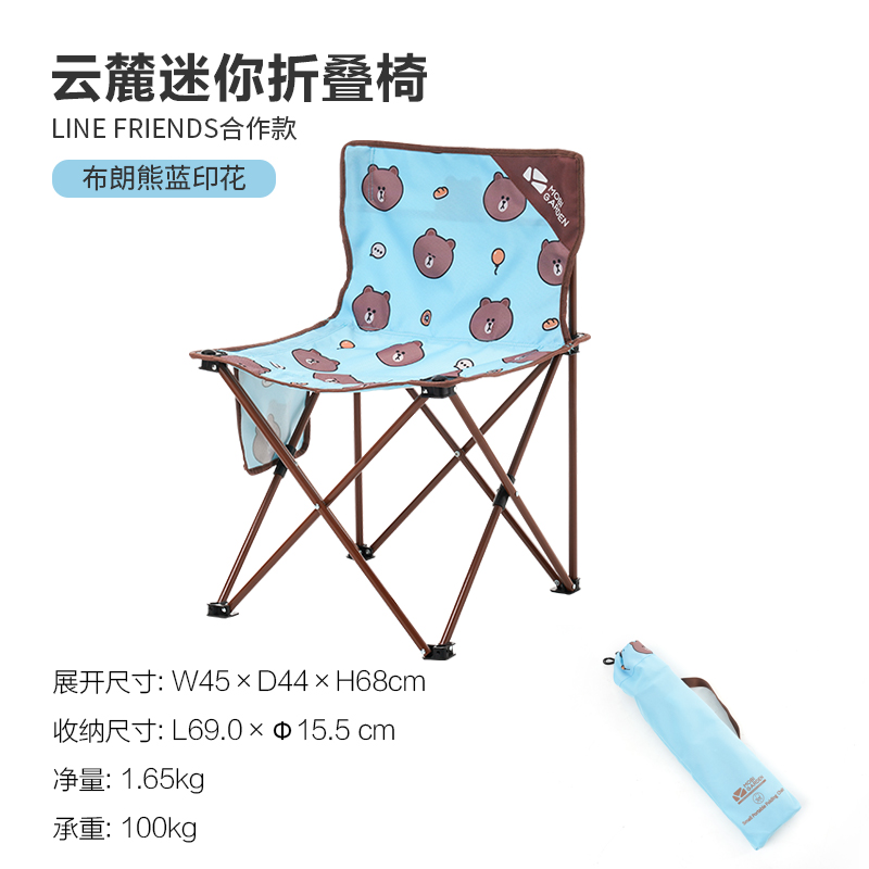 Line Friends, a Brown Bear Chair outdoor camping with mini folding bench
