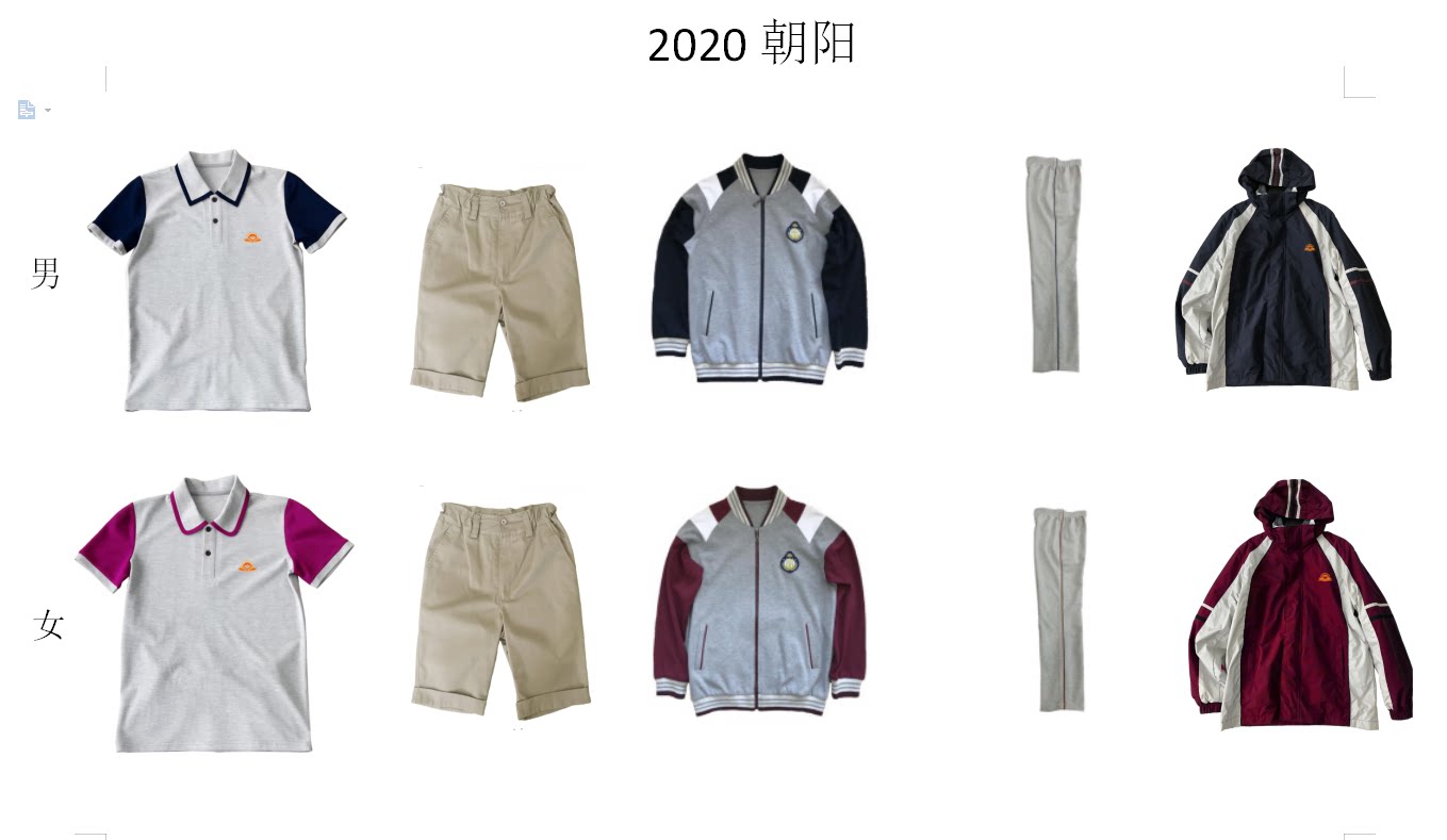 2020 school uniforms of Chaoyang Middle School in Changzhou City, Jinxuzi