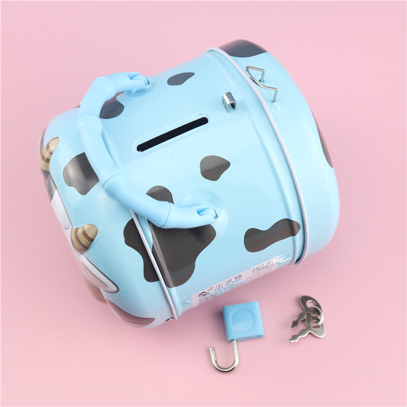 Cartoon Children Cute Deposit Money Pot Coins Zero Money Pot Male Girl Birthday Gift Anti-Fall Creative Belt Lock Deposit Money Cylinder