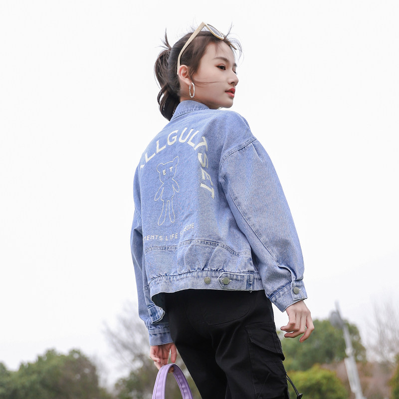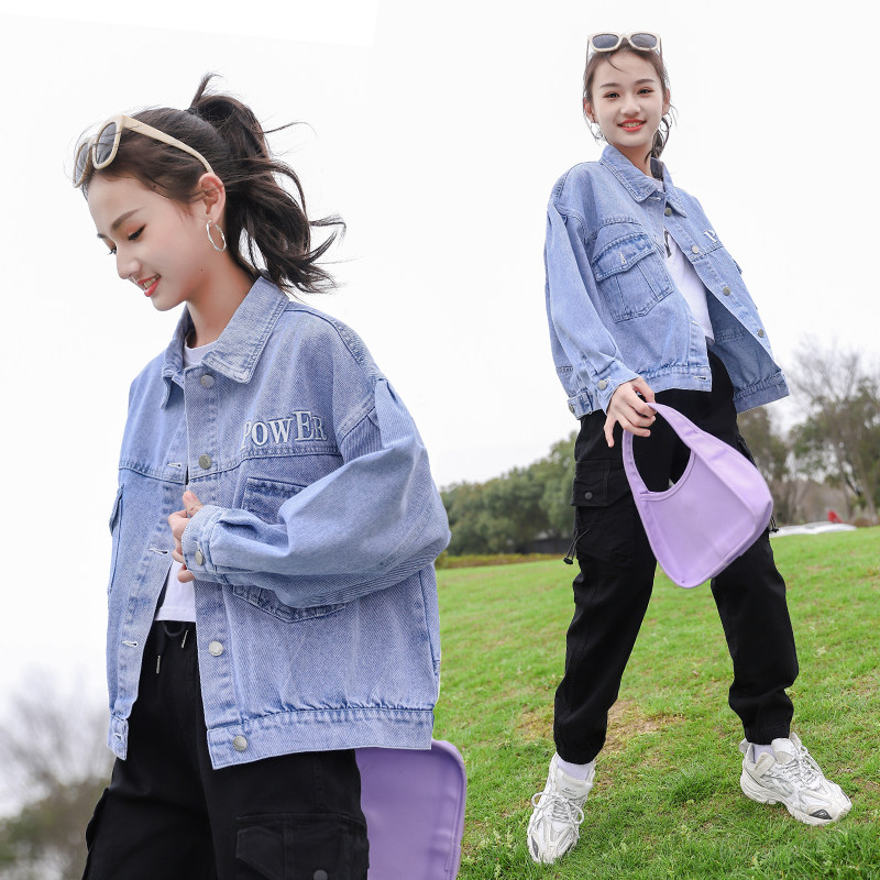 Girls Cowboy jacket Fashion Girls Spring Clothing 2023 New Yellow Girl Short Cowboy Han Edition