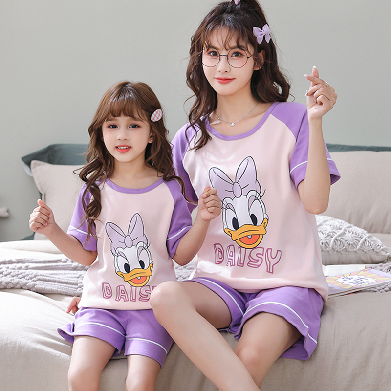 Girls' pajamas pure cotton summer summer skin-sleeve parents and children's home clothes Summer dress Princess