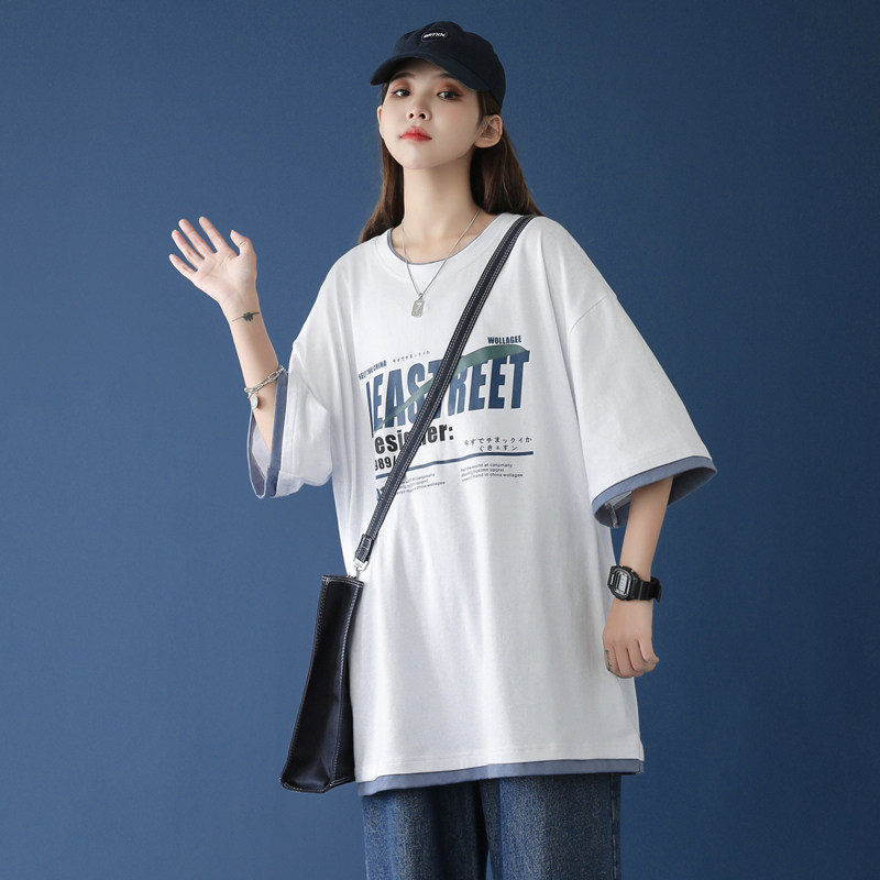 Short-sleeved summer men's 2021 loose youth trendy printed top casual all-match round neck Korean version of the trendy brand trendy half-sleeved
