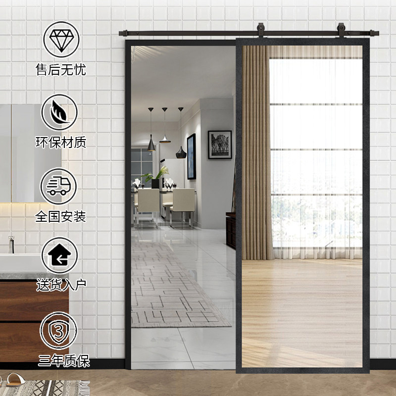 Barn door Mirror Solid wood door with track Push-pull sliding door Pulley door Kitchen folding door Custom interior with lock