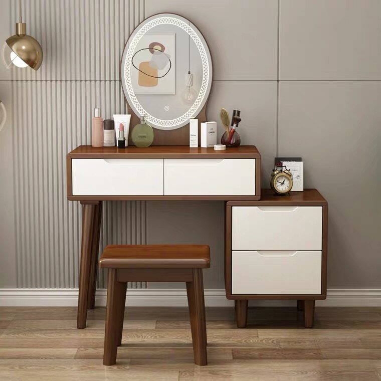 Nordic solid wood dressing table oak bedroom dressing table with light modern minimalist small apartment multi-function makeup table