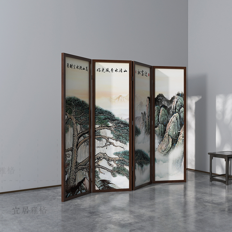 New Chinese Screen Partition Living Room Custom Bedroom Shelter Home Office Greet Guests Pine Solid Wood Folding Movement