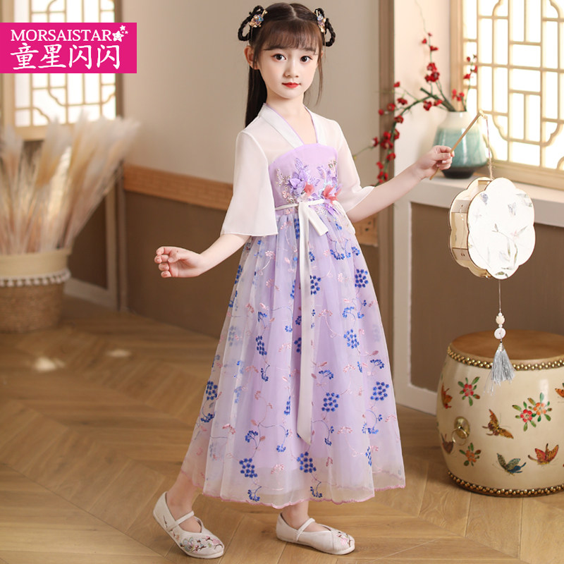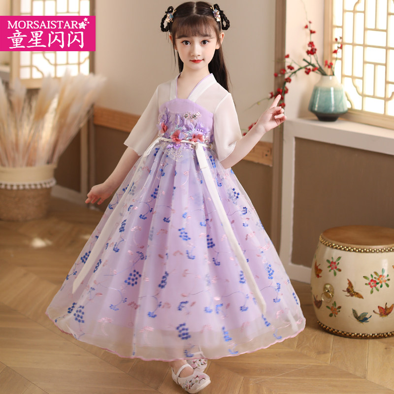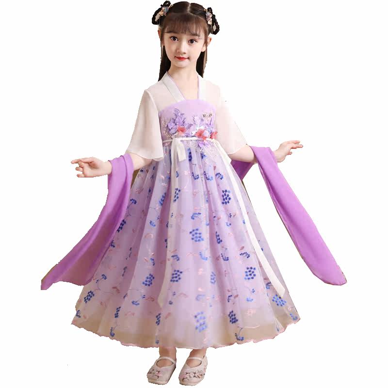 Girl's Han suit foreign dress Spring and autumn ancient dress Chinese style Skirt Child Hanfu Superfairy main skirt Spring style 6-year-old 7