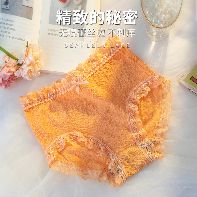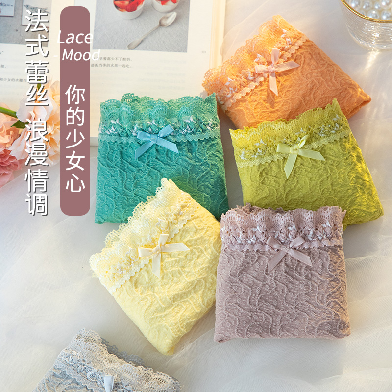 Lace panties women's pure cotton antibacterial breathable ladies cotton mid-waist briefs Japanese girls bubble pants summer thin section
