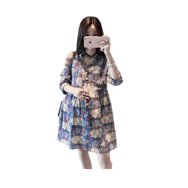 Pregnant Woman Spring Summer Dress New Loose Cotton Numb Dress Sub Summer Summer Medium Long Version Korean Version Fashion Printed High End