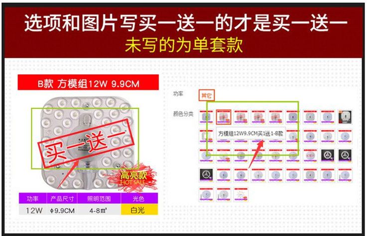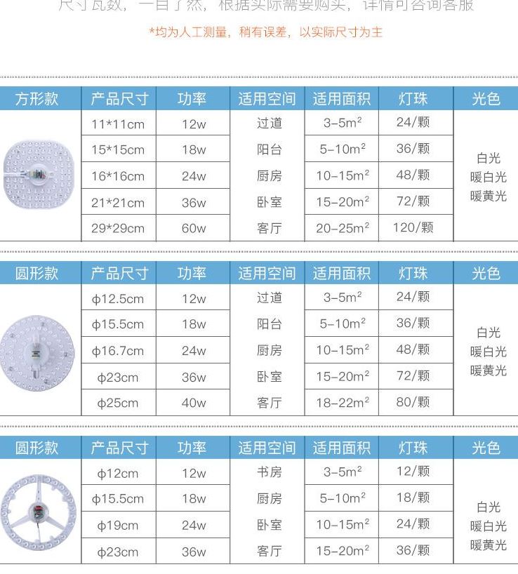 Square modules 12W (11CM) Square modules 18W (15 5CM) Square modules 24W (16CM) Square modules 36W (21CM) Square modules 60W (29C